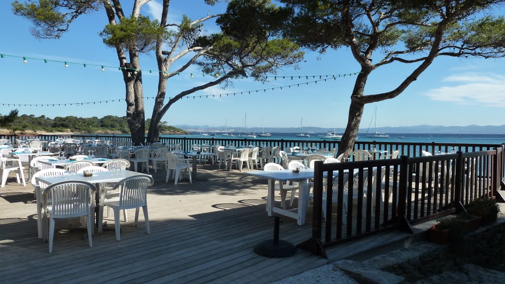 Op 1,4 km van het haventje, op volgens menigeen het allermooiste strand van Zuid-Europa. Een houten terras boven het zilveren strand. Er zijn omvangrijke salades, maar aarzel nooit te kiezen voor de brochette de la mer, het ’statement’ van dit adres: zwaardvis, gamba’s, sint jacobsmosselen, andere schaal- en schelpdieren. Maar carnivoren hoeven niet te wanhopen.