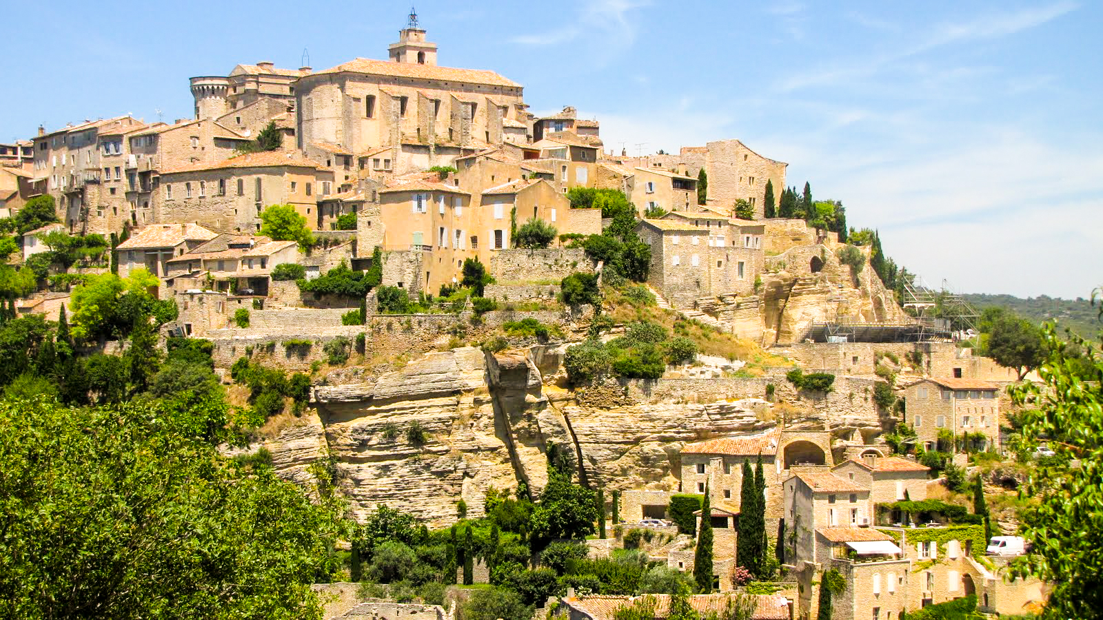 Het dorp bovenop een bergtop lijkt de wacht te houden over la vallée d’Apt en de vlakte van Cavaillon. De omhoog klimmende straatjes kronkelen naar het imposante kasteel dat Gordes domineert. Tegenwoordig is daar een museum voor moderne kunst in gevestigd. Er is het top-restaurant Les Borries (Route de Sénangue), maar het is ook goed in de restaurants/brasseries van de Bastide de Gordes (Route de la Combre). super-de luxe. Maar ik zit dus soms liever bij de ‘Italiaan’ La Bastide des Pierres op de Place Château.
