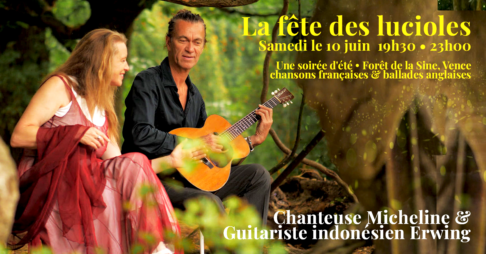 Meestergitarist Erwin van Ligten ‘Erwing’, waarmee Micheline al 15 jaar muziek maakt, brengt de zon in de tuin met Indonesiche klanken, harmonische samenzang en groovy ritmes. Vrienden, familie, gasten en kinderen zijn allemaal welkom.