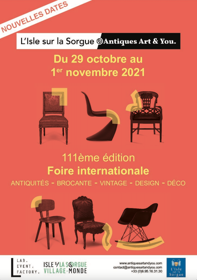 De 111e editie van de befaamde antiek- en brocantemarkt die dit jaar op 15 augustus in l’Isle-sur-la-Sorgue (Vaucluse) zou plaatsvinden, gaat vooralsnog niet door. Vanwege de coronaperikelen is de twee-jaarlijkse markt (met Pasen is er ook eentje) naar 29 oktober verplaatst. Hetgeen betekent dat de vele duizenden liefhebbers pas in het najaar de kraampjes van meer dan 500 exposanten af kunnen schuimen. De circa 300 antiquairs en galerieën in het stadje zijn wel gewoon te bezoeken. Meer info: https://foire-isle-sur-sorgue.fr
