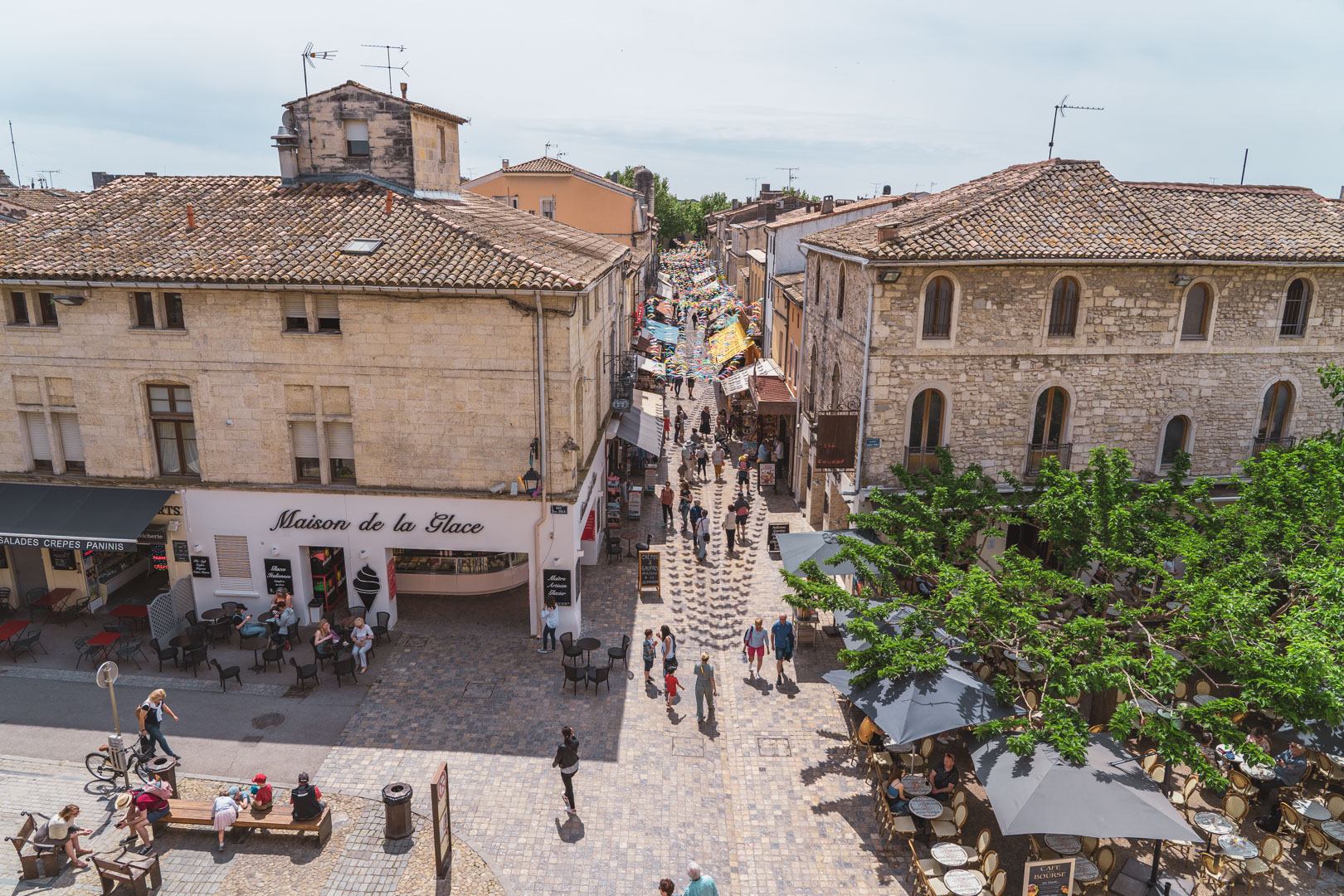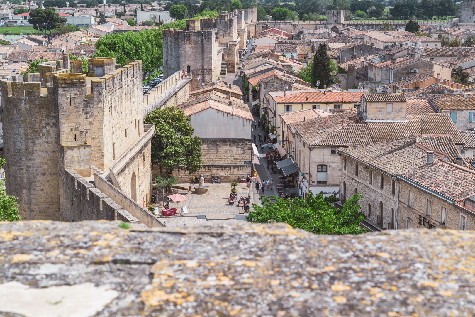 Aan de oostkant van de stad zien we in een paar van de torens nog de gaten van kogelinslagen uit de tijd van de godsdienstoorlogen. Tot slot beklimmen we ook de Tour de Constance, voor een nog mooier uitzicht over de stad en omgeving, tot aan de heuvels van de Cevennen toe. Met het totale rondje over de muren, inclusief de Tour de Constance, zijn we zo’n anderhalf uur zoet geweest. Na nog een korte wandeling door de stad, onder meer naar de Chapelle des Pénitents Gris uit de zeventiende eeuw, keren we terug naar onze auto.