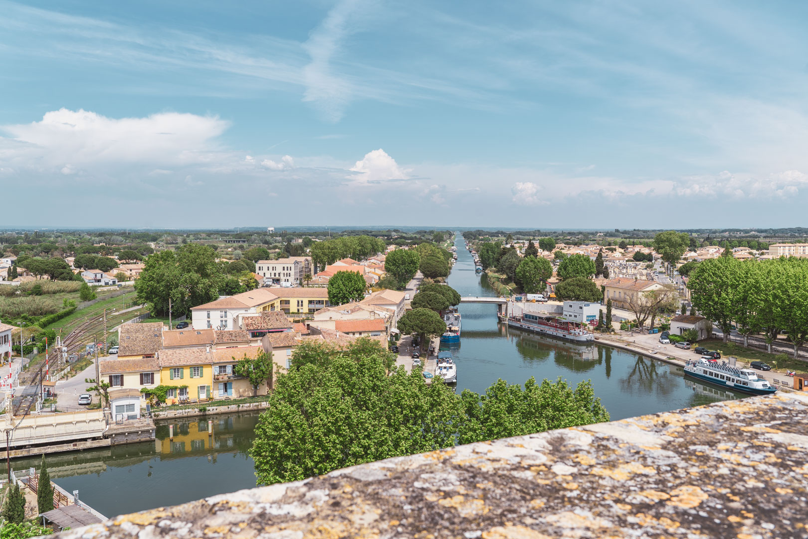 Tijdens ons verblijf in de Alpilles stond een bezoek aan Aigues-Mortes ook op het verlanglijstje. We parkeren onze auto op een van de grote parkeerplaatsen net buiten de vestingwerken en lopen via de haven naar het stadje. Als we door de poort aan de noordkant naar binnen lopen, worden we meteen ondergedompeld in de gezellige drukte. Het is voorjaar en al warm, we kunnen ons voorstellen dat een bezoek in hoogzomer misschien wat minder leuk is aangezien het dan nog warmer en drukker zal zijn.