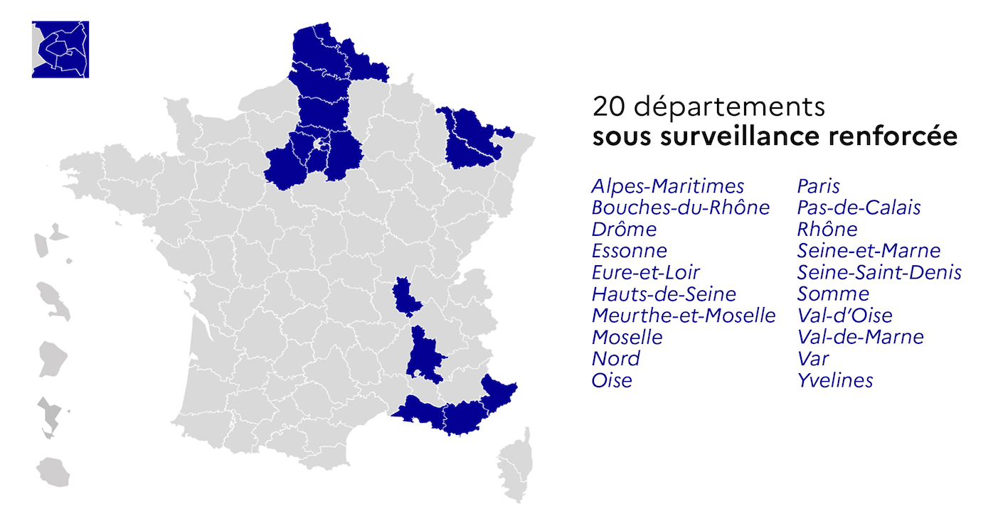 Er was gisteren (woensdag) al besloten tot een weekend-‘confinement’ (lockdown) voor Nice en een deel van het departement Alpes-Maritimes, en voor Duinkerke (Le Nord). Daar is de ‘taux d’incidence’ (aantal besmettingen per 100.000 inwoners) het hoogst van het hele land.