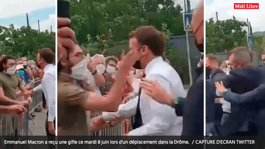 Macron: een mep in z’n gezicht (filmpje)
