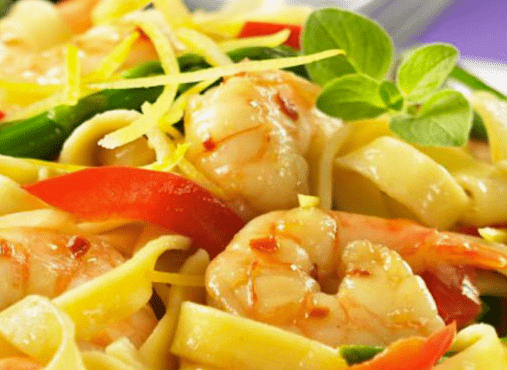 Gamba’s met tagliatelle en paprika