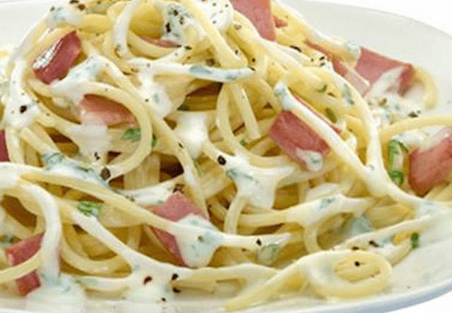 Pasta met Parmaham en notenkaassaus