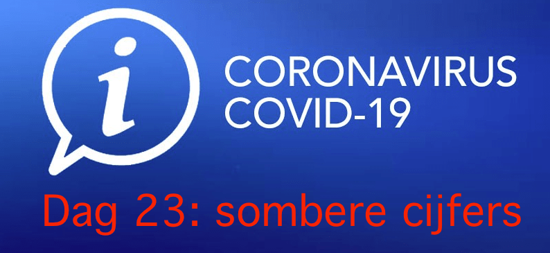 Op de 23e dag sedert de invoering van het ‘confinement’ zijn binnen 24 uur 607 mensen aan het virus bezweken. Het totaal aantal doden is daardoor tot boven de 10.000 gestegen. Om precies te zijn tot 10.32 van wie 7.091 in de ziekenhuizen en 3.237 in EHPAD’s (bejaarden- en verzorgingstehuizen). Er zijn nu 30.000 patiënten opgenomen, een ‘plus’ van 305. Aan de beademing: 7.131. Genezen verklaard: 19.337. Onder ‘genezen’ wordt verstaan: uit het ziekenhuis ontslagen.