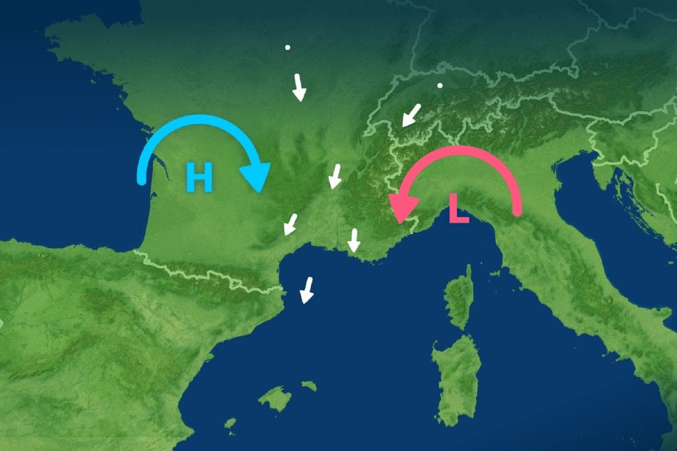 De Mistral heerst – grof gezegd – in het gebied tussen de Alpen en de Pyreneeën, maar in de Rhônevallei bereikt hij de grootste snelheden. Hier vormt het dal tussen de twee gebergten een soort trechter, waar de wind kan versnellen.