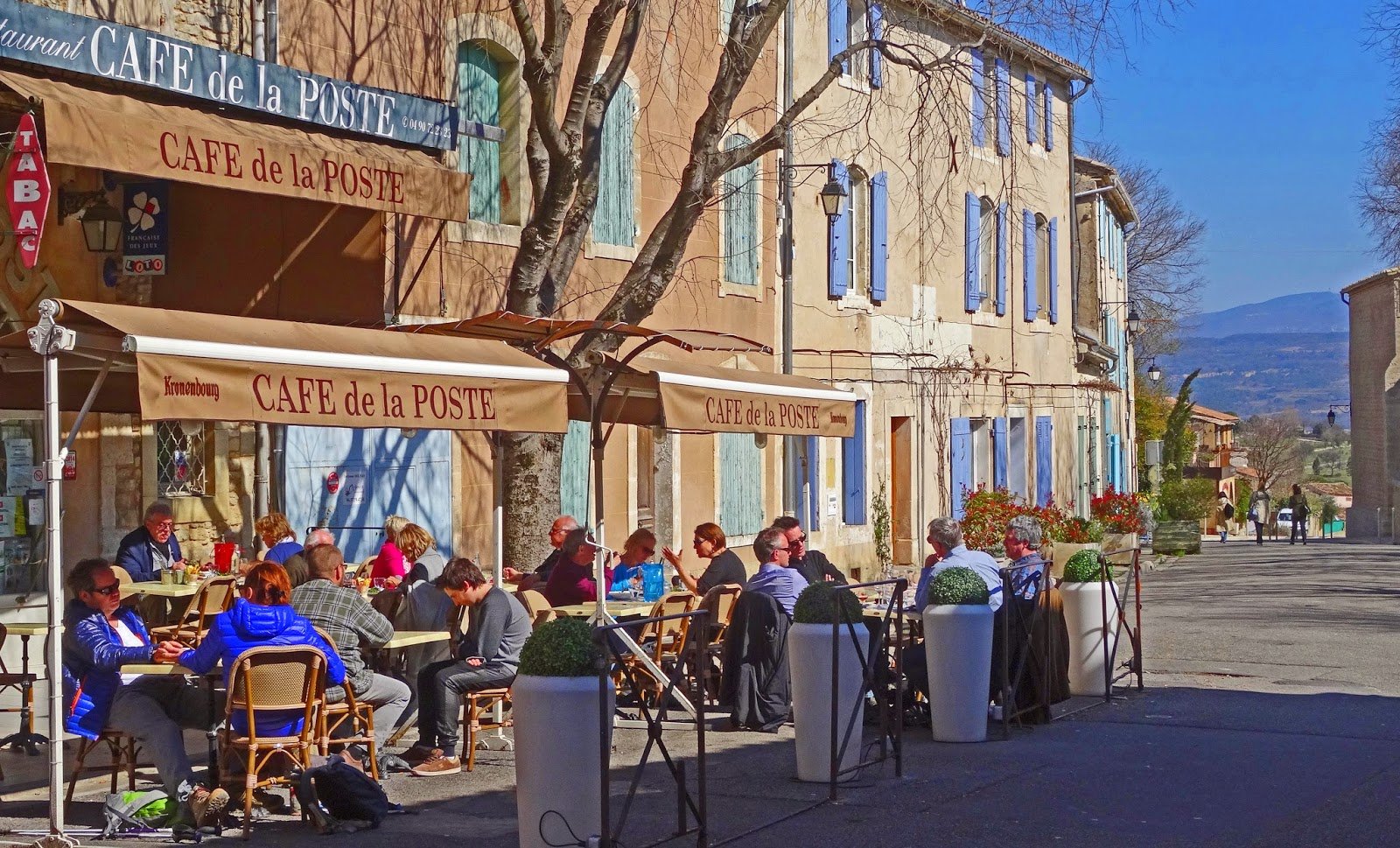 In Goult kom je hoe dan ook in Café de la Poste terecht. Een aardige Madame aan het hoofd van een oer-Provençaals café (met terras), zo’n ‘bistrot de pays’ waar het goed toeven is. En niet alleen qua voedsel & drank. De stevige ‘formule du midi’ oefent dan ook een heel begrijpelijke aantrekkingskracht uit op bouwvakkers, landarbeiders en de ‘fonctionnaires’ van de mairie; die ‘locals’ weten wel waar je voor de inwendige mens moet aanleggen. Geldt trouwens ook voor de Engelsen, met hun prullaria- en antiekwinkels in het hoofdstraatje. Zij hebben Goult in de jaren negentig min of meer geadopteerd en zijn er nooit meer weggegaan. Gelijk hebben ze. En zo ongeveer iedereen in het dorp komt er ’s ochtends even voor een café crème met een croissantje van de bakker en na gedane arbeid voor het apéro. Zoals het betaamt in de Provence en niemand zou opmerken dat die lange buitenlander die aan de bar een cappuccino bestelde de minister-president van Nederland is.