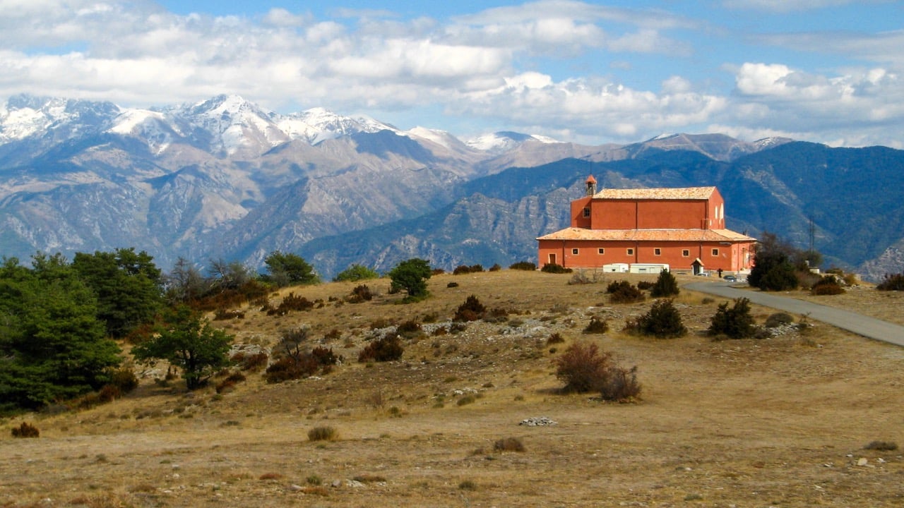 Ook zonder père Florini is het sanctuaire de La Madone d’Utelle een bezoek meer dan waard. Op het eerste gezicht lijkt het een kapelletje van niks, maar van binnen is het fraai. In het bijbehorende restaurant kun je er een hapje eten, in de hostellerie in retraite. Het werd gesticht in 850 (herbouwd in 1806) door Spaanse zeelieden die de Madonna wilden bedanken omdat ze hen van de verdrinkingsdood had gered en met een ster aan land en de bergen in had gegidst. Vandaar de grote hoogte (1180 meter) waarop het sanctuaire is gebouwd. Het panoramisch uitzicht over de Baie des Anges en de Mercantour is dan ook fenomenaal.