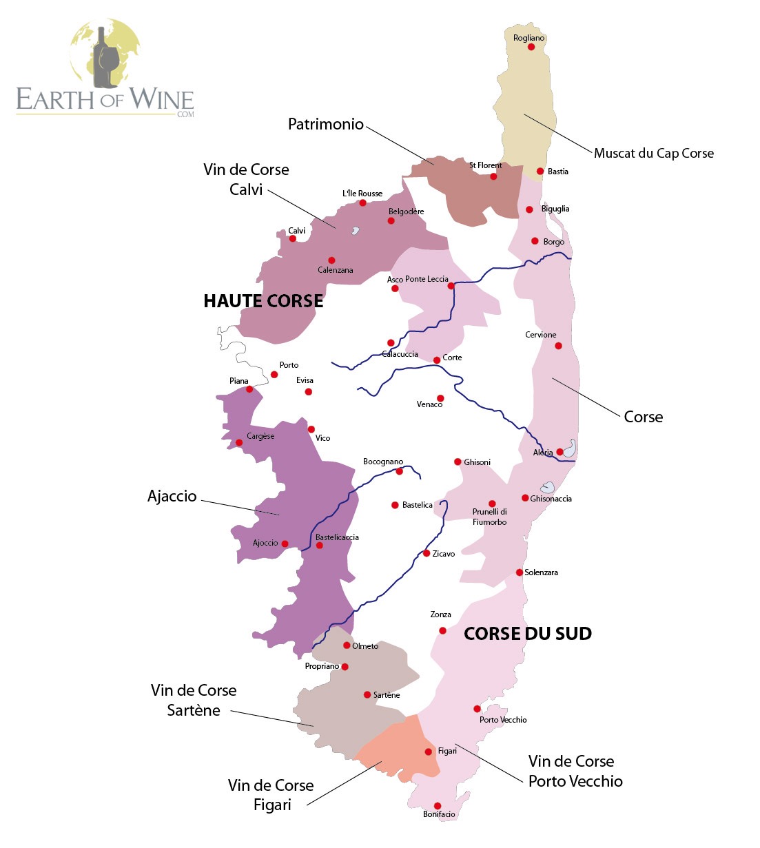 Corsica ligt dichter bij Italië dan bij Frankrijk. Het eiland was ook lange tijd in Italiaanse handen. Vandaar dat appellations als Ajaccio, Patrimonio, Porto-Vecchio en Calvi eerder aan Italië dan aan Frankrijk doen denken.