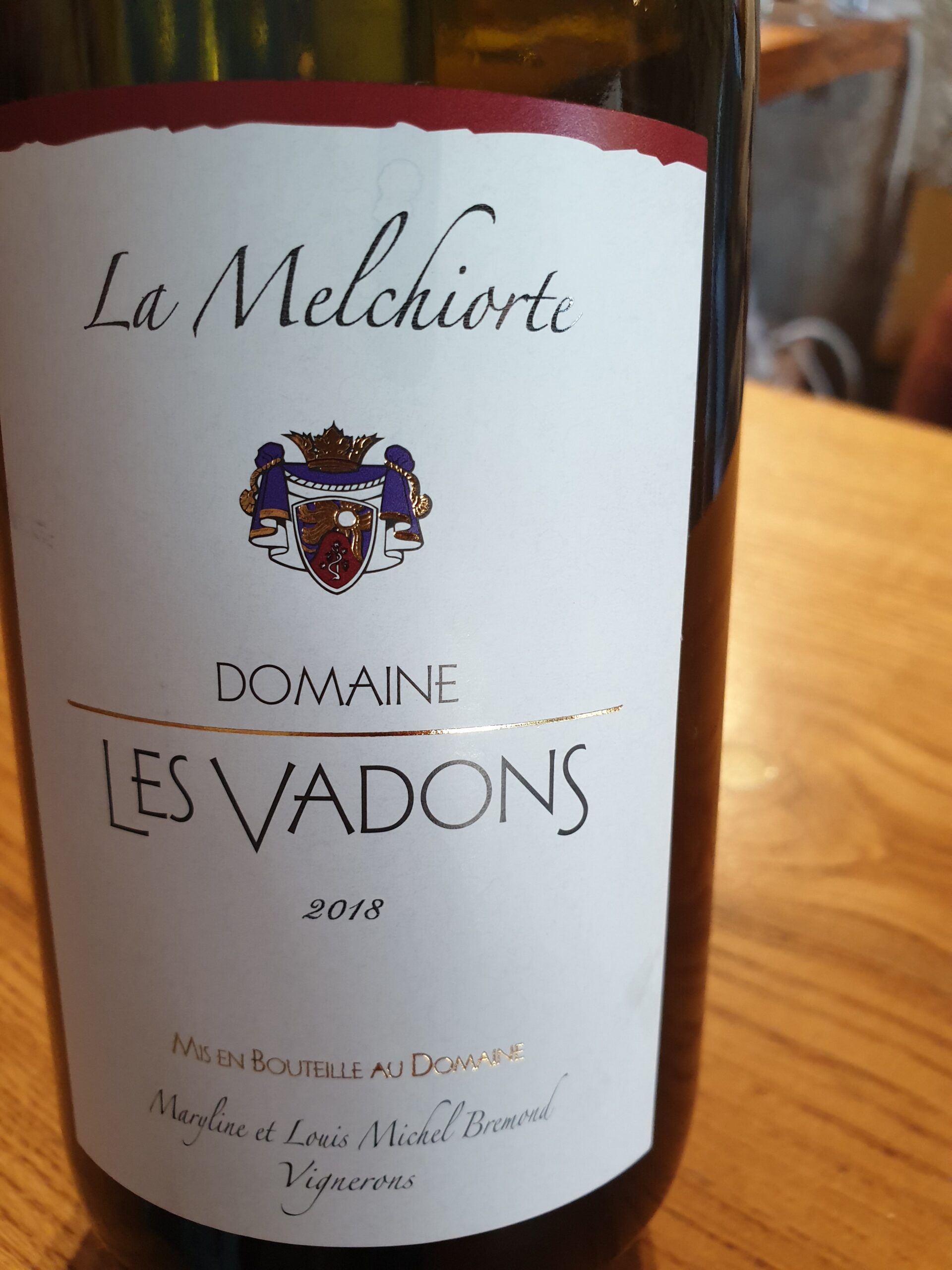 Eén fles van de selectie ‘wijn voor thuis’ past niet meer in een doos. Het is “La Melchiorte”, zijn trots. Alle kennis en kunde samengebald in een fles wijn. De handtekening van de wijnboer: Domaine Les Vadons rouge “La Melchiorte” 2018. Een wijn gemaakt van grenache noir, mourvèdre en syrah. Na de oogst weken de schillen 4 tot 5 weken mee, zodat ze veel smaak afgeven. Daarna wordt 50-80% van de cuvee opgevoegd in barriques.