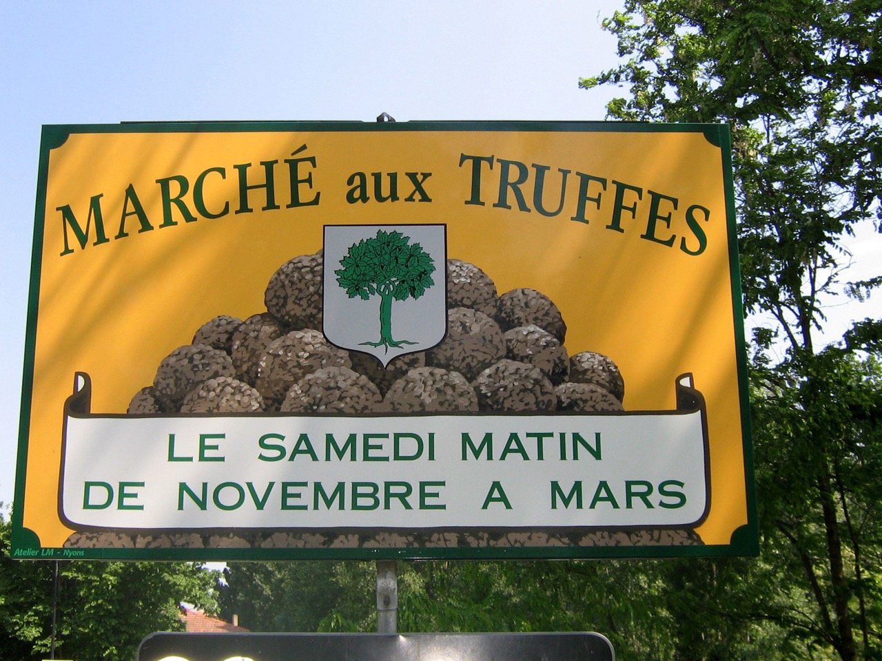 Ja, zou iemand die er al jaren woont, me later bijpraten, wijn uit de Drôme Provençal, hmm … Côtes-du-Rhône, proef de AOC en IGP, les Coteaux des Baronnies. Had ik de excellente geitenkaasjes Picodon (AOC) gekocht, de lavendelhoning, de abrikozen? Wist ik van de kersen en de pruimen? Van de lindebloesem in Buis-les-Baronnies, van de knoflook van Valdaine? Nee, moest ik erkennen. Maar van de zwarte truffel die naast de olijven de Drôme Provençale aan een topnotering in kringen van gourmands heeft geholpen, wist ik gelukkig wel het één en ander. Want lang geleden heb ik een keer de ook letterlijk bewierookte truffelmis in Richerenches (3e zondag in januari) op de grens met de Vaucluse bijgewoond. ‘Le diamant noir’ van de Drôme doet bepaald niet onder voor die uit Périgord.