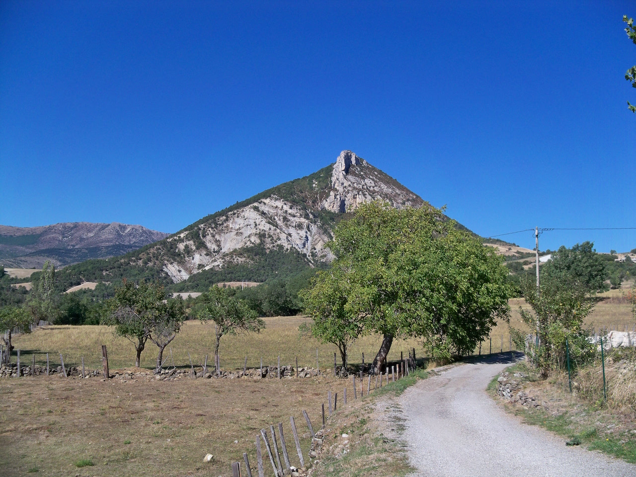 Erg hoog zijn de bergen niet, dat klopt, donkergroen bos loopt op tot verticaal-slingerende rots-diademen, waarboven vaak weer een reep bos – de kim – meegolft. Als je bent aangekomen in het oord Serres, ga dan niet naar rechts, richting Gap, maar naar links. Je komt dan op de D994 die Serres met Nyons en, verderop, het Rhônedal verbindt. Een eenzame weg. Je rijdt nog tientallen kilometers door het departement van de Hautes-Alpes, en vlak voordat je de grens met de Drôme bereikt, duikt je blik neer in een wijde kom. Het overkomt je niet vaak, dat je overweldigd wordt door de schoonheid van een landschap. Voor mij speelde het volkomen onverwachtse hierbij een rol. Ik moest doorrijden, ik moest om zo en zo laat weer thuis zijn. Maar ik nam me voor hier terug te komen. Bij een bordje langs de weg, met erop de naam van een dorp, minderde ik vaart. Eronder een pijl. Hij wees naar een geklasseerd monument, een priorij: St André de Rosans. Naam genoteerd – voor een volgende keer. Dan zal ik zorgen dat ik wat meer tijd heb, dat ik wat kan verkennen. Het was in de zomer.