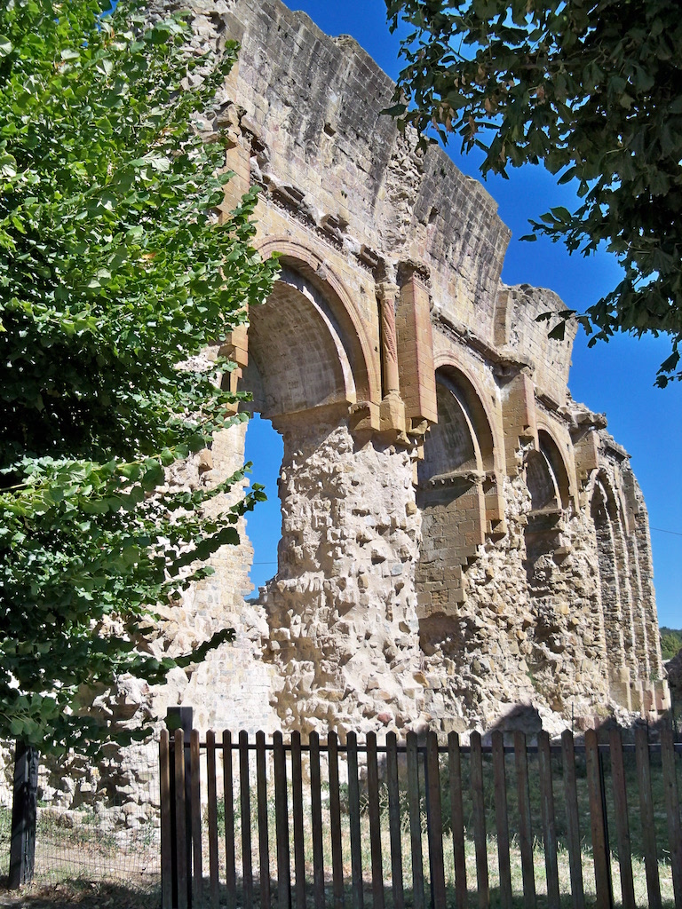 De bouwvallen van de priorij liggen in een wei, achter prikkeldraad. Een bord maakt melding van een mogelijkheid tot bezichtiging. In het toeristenseizoen. Niet nu. Ik zie de resten van het middenschip van een kerk: een muur met een rij romaanse boogramen. In de diepte een smalle apsis met in de zijwand ingebouwde zuilen. Ik loop wat verder, stuit op een tweede bord, ditmaal met uitleg. Ik lees dat de priorij uit de tiende eeuw stamt, dat het een dépendance was van de machtige abdij van Cluny, dat de priorij over veel land in de omgeving beschikte, en dat kerk en kloostergebouw tijdens de godsdienstoorlogen uit de 16e eeuw flink werden beschadigd. Ook wordt melding gemaakt van bijzondere vloermozaïeken, vergelijkbaar met die van de priorij van Ganagobie bij Forcalquier. Tenslotte wordt op de motieven op het reliëfwerk gewezen – reliëfwerk dat de architraven en kapitelen siert. Het zijn wijnranken en -bladeren. Van een bijzondere druivensoort die alleen nog op Corsica voorkomt, de Paga Debiti. En inderdaad, als je goed kijkt – oppassen dat je jas niet in het prikkeldraad blijft steken! – herken je het motief overal. Ik loop weer naar het bordje, ik lees dat men vanwege deze stenen wijnbladversiering lange tijd heeft gedacht dat het gebouw een Bacchustempel was uit de Romeinse tijd. De herinnering aan monniken, aan prevelgebeden en gregoriaanse gezangen was mettertijd blijkbaar verbleekt, het gebouw werd in de ogen van de buurtbewoners een heiligdom geweid aan de god van de wijn.