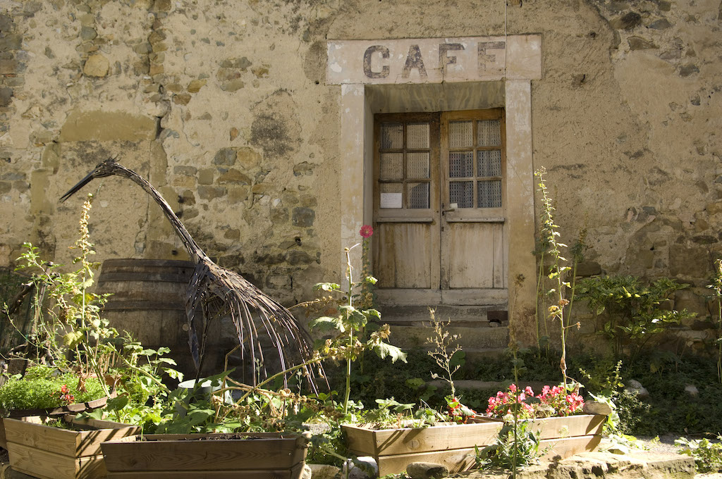 Zelden heb ik zo’n indruk van verlatenheid meegemaakt als toen ik door de paar smalle straatjes van het dorp rondwandelde. Er was niemand. En toch duidde alles op vroegere bedrijvigheid, op vroeger leven. Hier een poort dat naar een binnenpleintje leidt: een roestende 4L, voor de rest leeg. Daar een gevel met op de begane grond een open ruimte, waarschijnlijk een oude smederij: leeg. Hier een uithangbord met verbleekte letters, ‘slager en poelier Ducasse’: nergens een kip te bekennen. Daar, op een hoek, een café: leeg, de luiken hangen er scheef bij, sommige ruiten zijn ingeslagen. Wat vooral opviel, waren de kleine proporties, en hoe dicht alles tegen elkaar aan was gebouwd. Zo tekende Marten Toonder de straatjes waar Heer Bommel doorheen paradeerde. De mensen zijn klein in Zuid-Frankrijk – en waren vroeger nog kleiner dan nu. Maar zelfs dan, wat woonden ze hutjemutje op elkaar! Dat was misschien voor de veiligheid, samen ben je sterk. Maar het moet ook erg gezellig zijn geweest. Een mini-samenleving, ver van alles, maar autonoom.