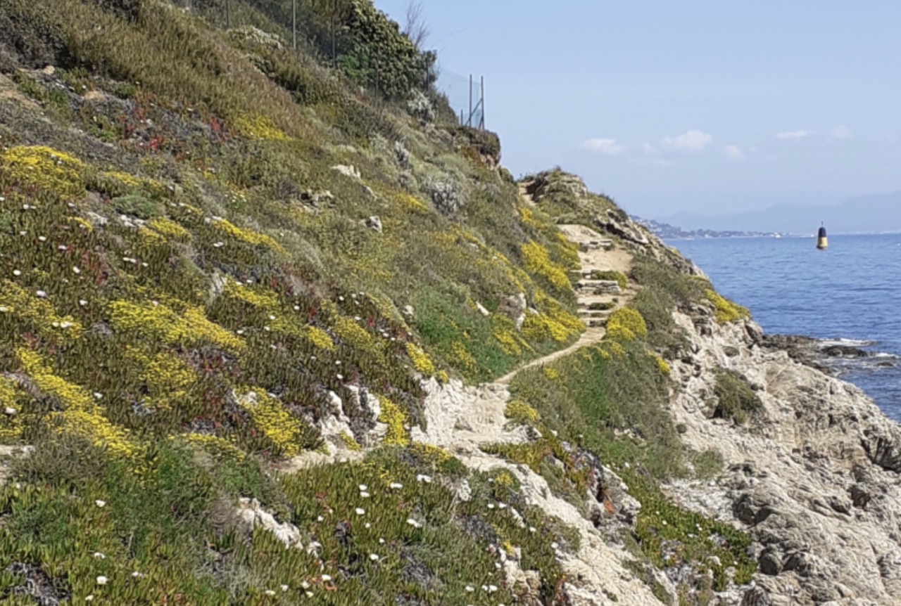 Deze clichés zijn niet het Saint-Tropez dat je zal ontdekken wanneer je de sentier littoral afwandelt. In de maand mei vertaalt de schoonheid zich in een wondermooie bloemenpracht met een onuitputtelijke kleurenschakering. Het pad langs de kust is uitstekend onderhouden en gunt je de tijd om rustig de kleurrijke bloemen en de helderheid van het azuurblauwe water te bewonderen. Wanneer je door het zand van de plage des Salins geploeterd hebt, worden de rotsen ruwer. Ze zorgen voor een natuurlijke scheiding tussen het vaste land en de zee. Langs de rechterkant onttrekt een aaneenschakeling van somptueuze villa’s zich aan het oog van de avontuurlijke wandelaars omdat hoge afsluitingen de weelde aan de voorbijgangers verbergen. Het monotone klotsen van de deinende golven wordt af en toe overstemd door het gebrom van de werktuigen van de arbeiders die instaan voor het onderhoud van de uitgestrekte bloemenperken en grasvelden. Welke fabelachtige getallen zijn er over de toonbank gerold bij de verkoop of bouw van deze kastelen?