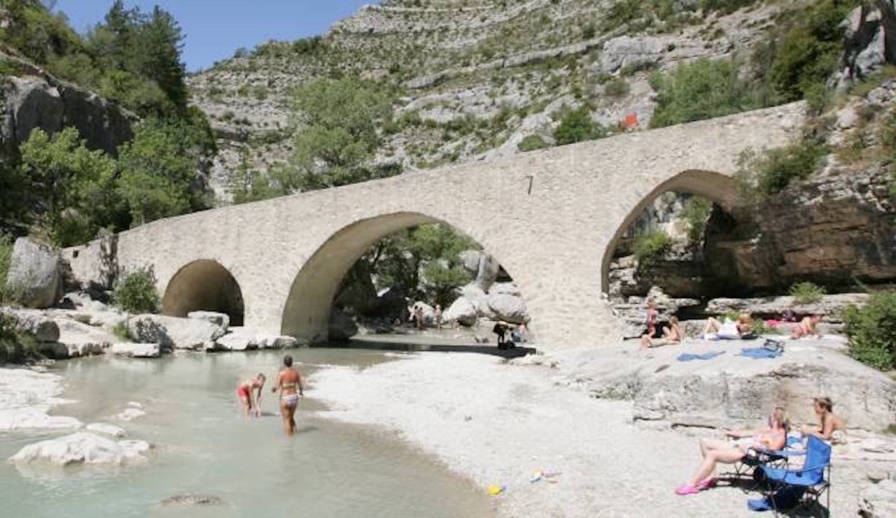 Op 8,2 km van Malaucène, tien minuten met de auto of een halfuurtje met de fiets. Een heerlijke plek aan het water van de Ouvèze, onder een oude Romaanse brug. Je vindt er schaduw- en zonneplekjes, stilstaand en snelstromend water. Een plek waar je gerust een hele dag kan doorbrengen. De kids hebben veel verschillende plekjes om te zwemmen, spelen, schuiven van de rotsen of zelfs om te springen van de rotskant.