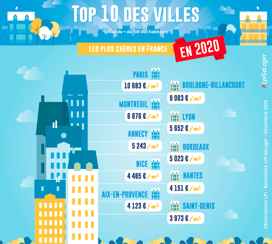 Vanzelfsprekend gaat Parijs aan kop, met een vierkante meterprijs van € 10.683, die het afgelopen jaar steeg met 5,7%. Maar als je dat afzet tegen de prijsstijgingen in steden als Montreuil en Nantes (+10,4%), en Lyon en Aix-en-Provence (+11,6%), valt ‘la capitale’ qua prijsstijging zelfs nog mee.