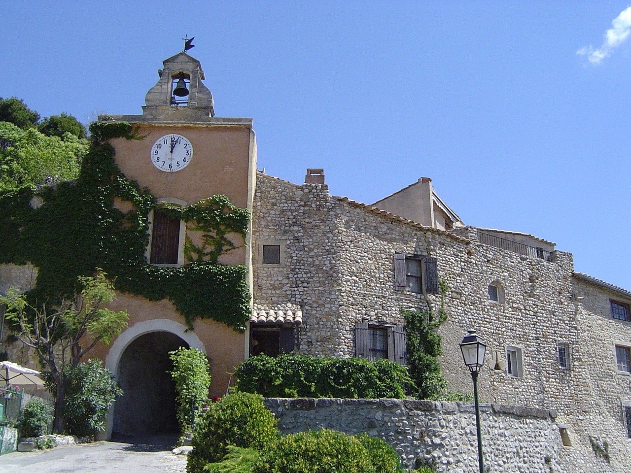 We gingen terug richting Vaison via de Traversée deVilledieu, een vervaarlijke route over een soort kaap. Je ziet onderweg van bovenaf alleen maar wijnvelden, olijf- en pijnbomen. Wat mooi, dat Pays de Voconces! En je komt de overblijfselen tegen van de ommuring van Villedieu die waarschijnlijk uit de 10e eeuw dateert. Net als de kerk, in de loop der jaren veelvuldig gerestaureerd. Heerlijk pleintje trouwens daar, in de schaduw van platanen.