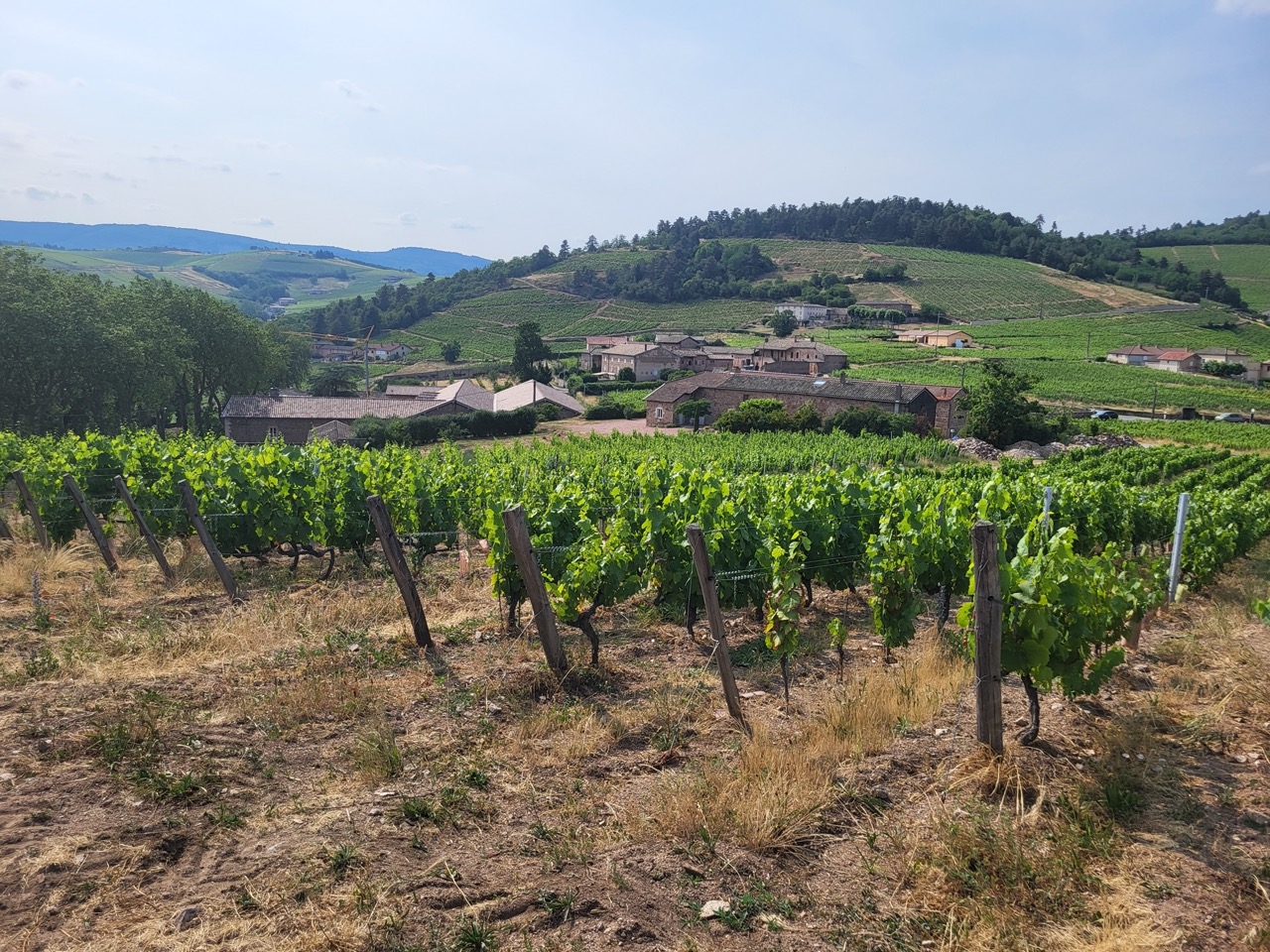 Mijn ontdekkingstocht door het beloofde Fleurieland start direct na aankomst met de twee wijnen van Julien Clément: Fleurie 2021 en Fleurie 2021 Vieilles Vignes. De familie Clément is een echte wijnbouwfamilie. Zoon Julien heeft formeel het wijnstokje overgenomen van zijn ouders Françoise en Rémi. Het echtpaar verzorgt de gastvrije ontvangst in ons vakantieverblijf. Eigenlijk zijn zij met pensioen als wijnbouwer, vertrouwt Francoise mij toe als ik haar ’s morgens vroeg tegenkom, gewapend met een petje vanwege de krachtige juni-zon, op weg naar de wijngaarden (8 ha) in Poncié en La Brirette. Ze kunnen het niet laten om een handje te helpen en, zo voegt ze er later aan toe: “we zijn er nu eenmaal mee vergroeid en gaan ermee door tot we neervallen”.