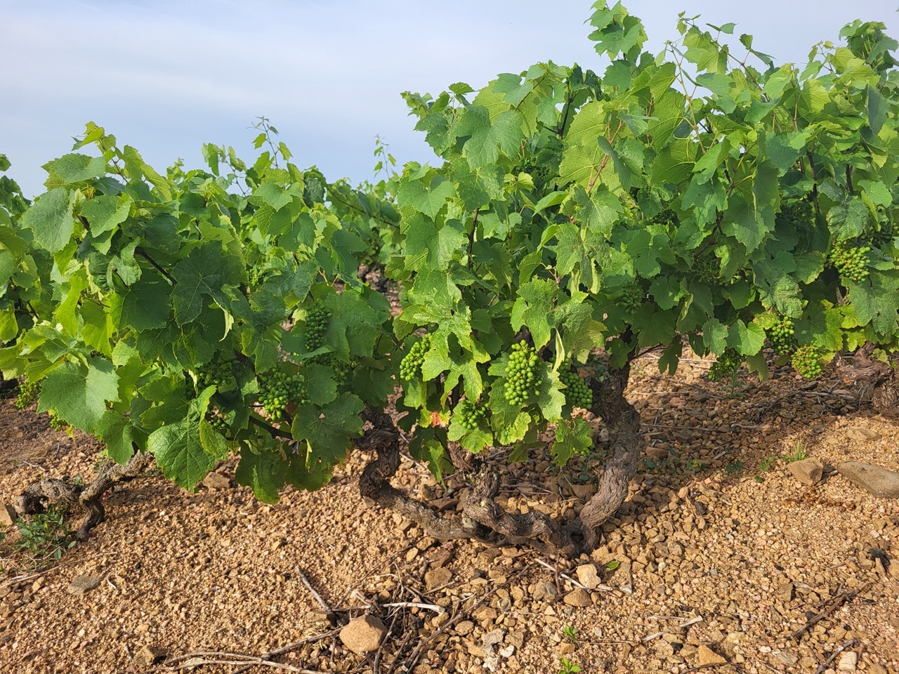 Juni is een drukke maand voor de wijnboer. Regenbuien, afgewisseld met prachtige warme en zonnige dagen, doen de loofwand groeien. De gevreesde hagel die dit gebied vaak teistert, laat zich gelukkig niet zien. Er is veel werk met het opbinden en het in toom houden van de lange scheuten groen, nu de eerste groene bessen zich gevormd hebben. Het valt dan ook niet mee om een bezoek te organiseren bij Bruno & Valérie Copéret van Domaine de Roche-Guillon. Toch willen deze vignerons mij graag ontvangen, zelfs ná hun drukke werkdag. Dus maak ik in de namiddag een ommetje, het dal in richting Roche-Guillon en is madame Copéret totaal verrast dat ik à pied ben. Ik ben niet zo’n Franse eenpersoonsweggetjesrijder, beken ik, en het is maar een kilometertje lopen. De lange, warme en stoffige werkdag kleeft nog aan Bruno Copéret, net terug uit de wijngaard, het overhemd wijd open. Ik voel me enigszins bezwaard en vraag voor de zekerheid of ze een proeverij nog wel zien zitten na zo een intensieve werkdag. Ik kan natuurlijk ook gewoon een paar flessen meenemen en weer omkeren. Mais non, zegt hij met een knipoog, ik kan met Valérie alvast aftrappen met een mooi glas. Na een opfrisbeurt, het haar nog in de war, maar met glinsterende ogen, schuift hij aan de tafel in het kleine, maar zalig koele keldertje en proeven.