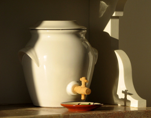 Hoe je aan een mère de vinaigre komt? Simpel: je ‘vergeet’ een restje wijn in een onafgesloten fles of glas, en met een week of wat ontstaat er een rare schimmelachtige laag op de vloeistof. Niet wegflikkeren! Moeder meldt zich. Het vervolg is minder eenvoudig; je moet die cultuur verder opkweken, het liefst in een echte vinaigrier of een aardewerken pot waarin la mère kan ademen (dus voldoende zuurstof krijgt), en je moet haar voeden met restjes wijn (hoe beter van kwaliteit, des te beter de azijn) zodat ze verder kan uitdijen tot een gezapig moeke dat kloekt over steeds beter wordende mildzure azijn. Marise was er een meester in. Haar azijnmoeder was zó welgedaan, dat ze vrienden er graag van liet meegenieten. Gewoon, door je opeens te verrassen met een stukje ervan; dat kan, je kunt van een forse azijnmoeder stukjes afsnijden om opnieuw op te kweken. Dus kreeg ik een tiental jaren geleden ineens een gehalveerde plastic waterfles in handen gedrukt met een laagje drab waarop een dikke laag glibber dobberde. Als bedankje voor de Indische rijstmaaltijd van de vorige avond. Eenmaal veilig overgeheveld in een riante mandfles, groeide het kindmoedertje uit tot een formidabele oermoeder van vele liters voortreffelijke azijn.