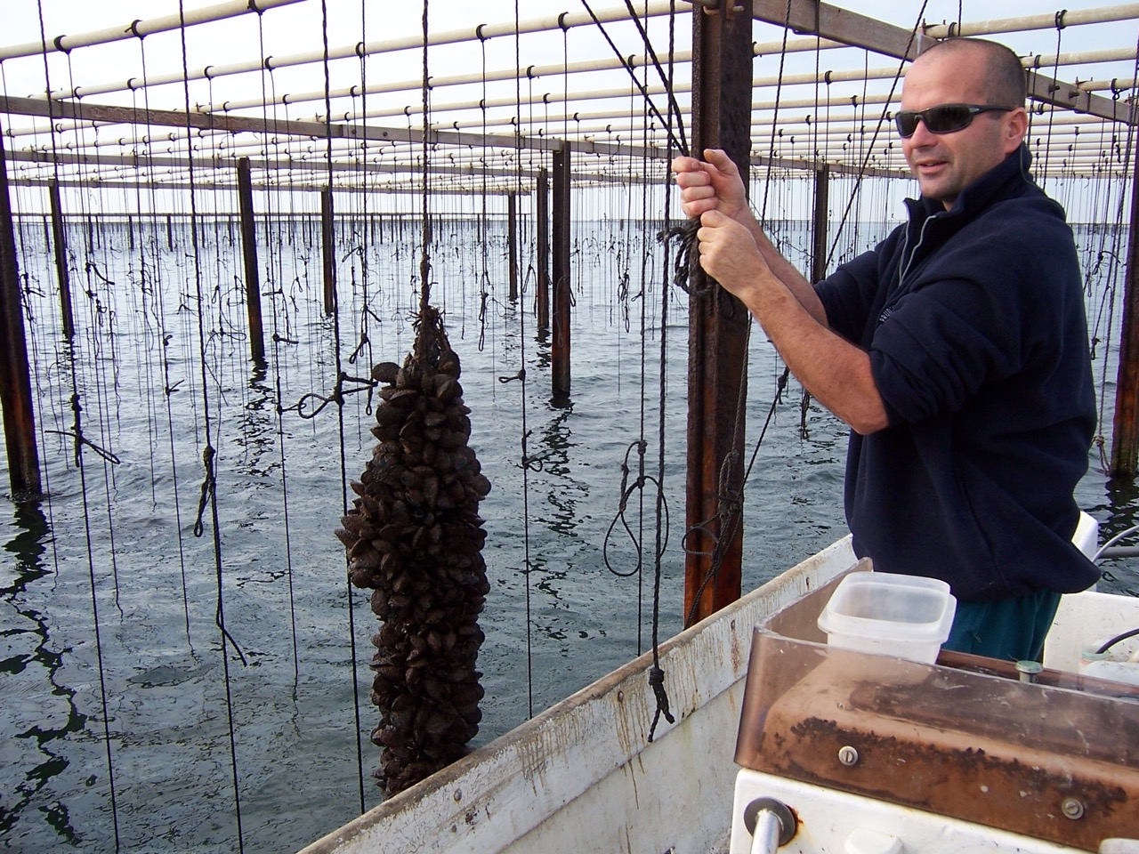 De belangrijkste productieregio van oesterbroed in Frankrijk is de baai van Arcachon, goed voor circa 3 miljard jonge oesters per jaar. Dat zaad wordt uitgezet in andere productiegebieden in Frankrijk en in het buitenland. De Zuid-Franse schaal- en schelpdierkwekerij ontstond zo rond 1875. Doordat de Middellandse Zee geen getijden kent, moeten speciale technieken gebruikt worden: hangende kweek, met behulp van tafels, op een constructie bestaande uit rails waarop dwarsbalken en gekruiste palen rusten.