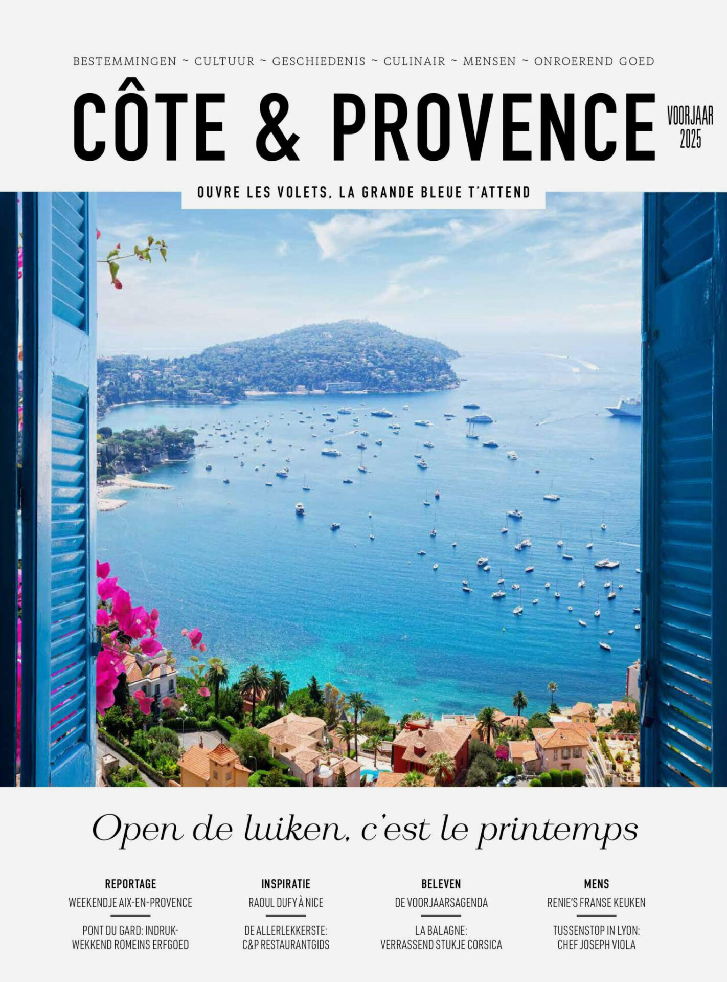 Met de nieuwe voorjaarseditie van Côte & Provence verwelkomen we de lente en nemen we je mee naar weer onverwachte hoekjes van de Provence. Een weekendje kunst en cultuur in Aix, de favoriete restaurantjes van de redactie, we steken even de Rhône over voor het bijzondere erfgoed van de Pont du Gard, en wat is precies de tropische illusie van de Côte …? Dit en veel meer nog in de nieuwe editie.