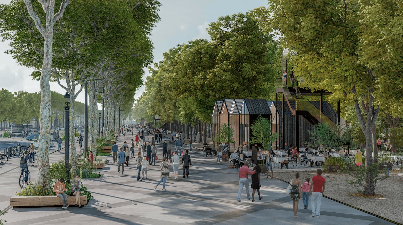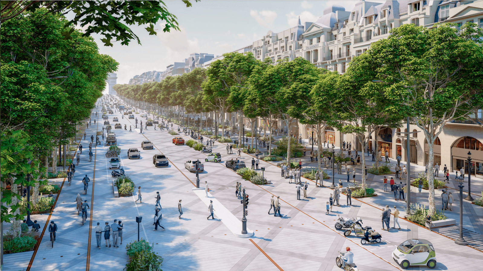 Men deed een beroep op de architect Phillipe Chiambaretta die even tekende hoe het ook zou kunnen. Vier in plaats van acht rijstroken, meer ruimte voor fietsers en voetgangers, vooral meer groen. Mevrouw Hidaldo heeft zich laten overtuigen en trok de gemeentelijke knip.