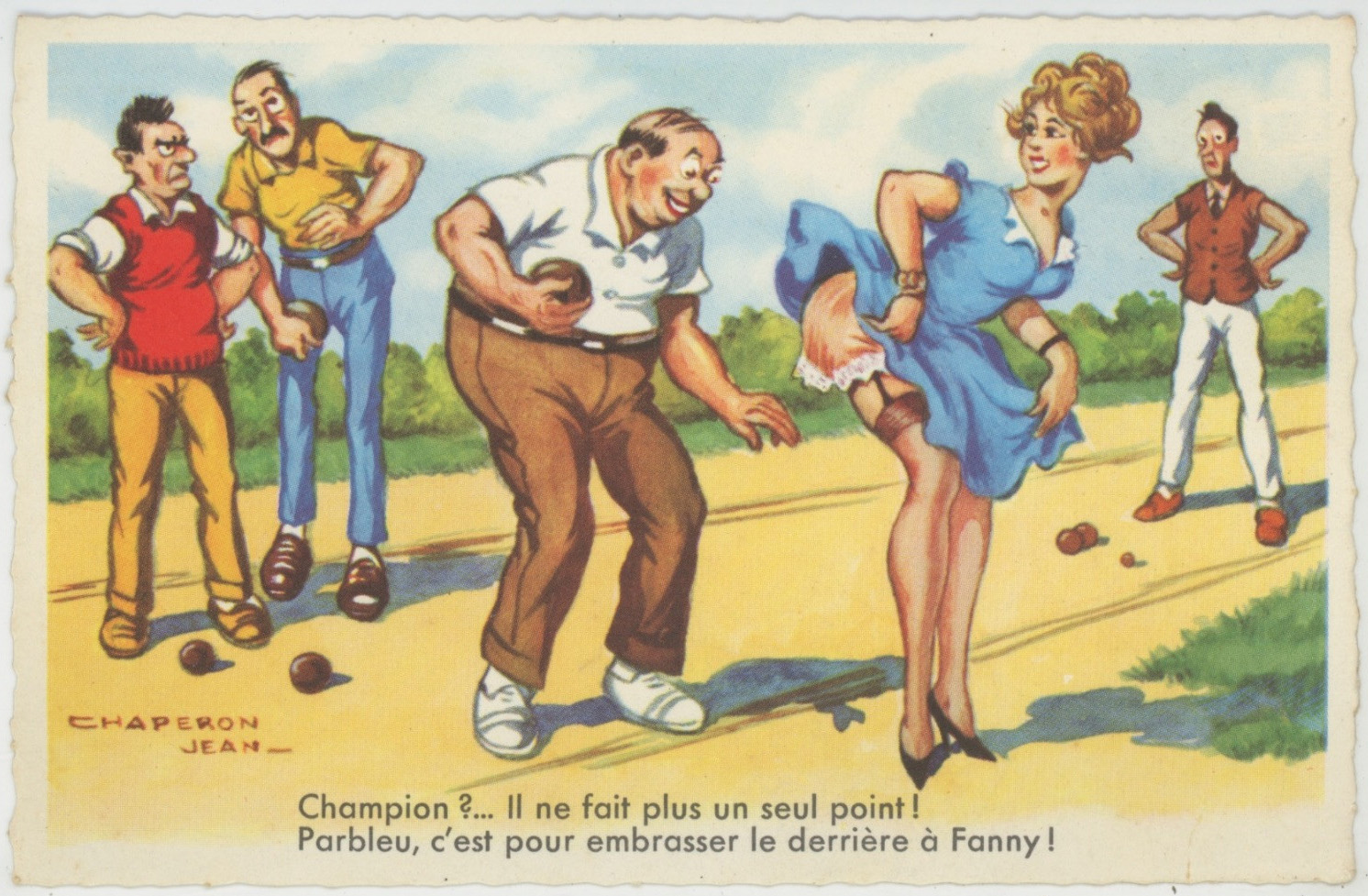 Maar in je eentje tegen een twee- of drietal, dat gaat niet. Een toernooi van een aantal rondes kan nogal duren, maar dan is er dat café-terras, altijd zéér nabij. En als je daar toch bent, moet je natuurlijk wel even kunnen meepraten over de ‘schande van Fanny’. Dat is het ergste dat een pétanque-speler kan overkomen: een Fanny. Legende: dramatisch verliezen en daarna gedoemd ‘en public’ de blote billen van een meisje te zoenen.