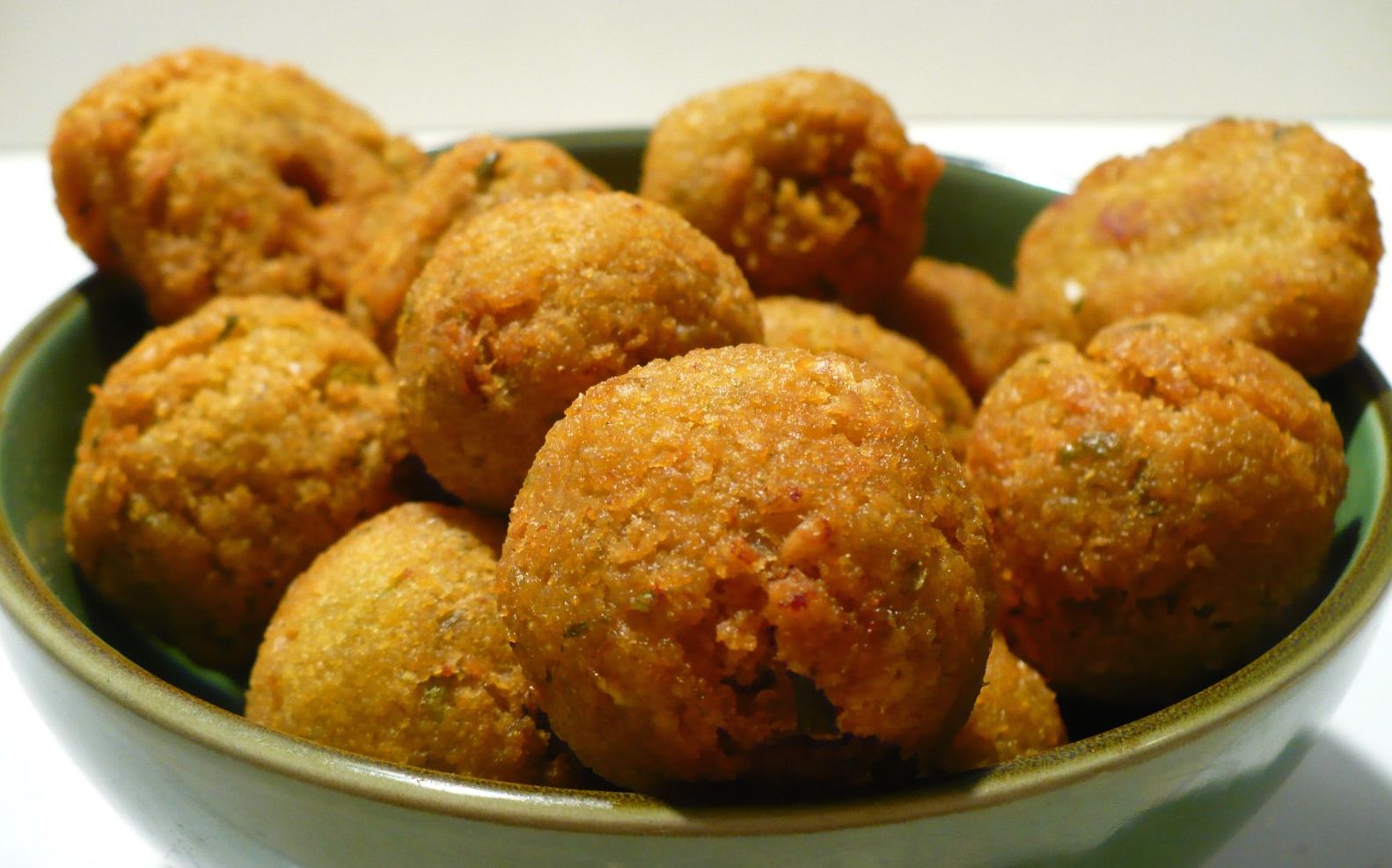 Week de bonen een paar uur in ruim water. Gebruikt u blikbonen, dan goed laten uitlekken in een vergiet. Doe ze in de keukenrobot. Doe er de gember, komijn, curcuma, koriander, bieslook/ui, en Spaanse peper/ambal bij. Mix tot een dikke pulp. Draai er met de hand balletjes van. Is de pulp niet dik genoeg, voeg er dan net zo lang bloem bij, tot er balletjes van gedraaid kunnen worden.