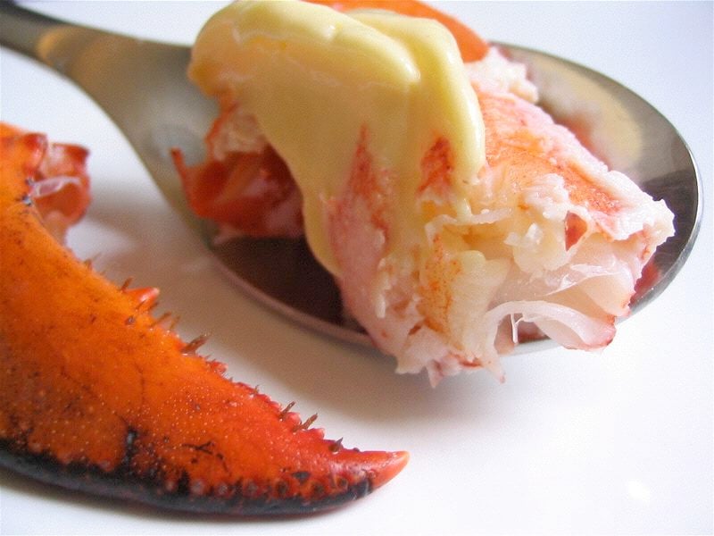 Kook de rivierkreeftjes snel gaar in ruim kokend water; voeg de rivierkreeftjes pas toe als het water kookt. Ongeveer een minuutje, hooguit twee, is genoeg om ze gaar te krijgen en sappig te houden. Doe ze over in een vergiet en laat afkoelen. Pel de tenen knoflook en knijp ze met de knijper fijn boven een kom, voeg wat zout toe. Wie het echt goed wil doen, doet de tenen in een vijzel, plet ze daar met wat zout tot een smeuïge massa, en doet ze dan pas in een kom. Voeg de eierdooier toe en meng/mix alles stevig door elkaar. Laat een kwartiertje rusten. Voeg dan scheutje voor scheutje olijfolie toe en blijf intussen stevig kloppen, mag gewoon met de mixer, tot er een lobbige mayonaise ontstaat. Voeg op het laatst -al roerend- citroensap toe, plus peper naar smaak.