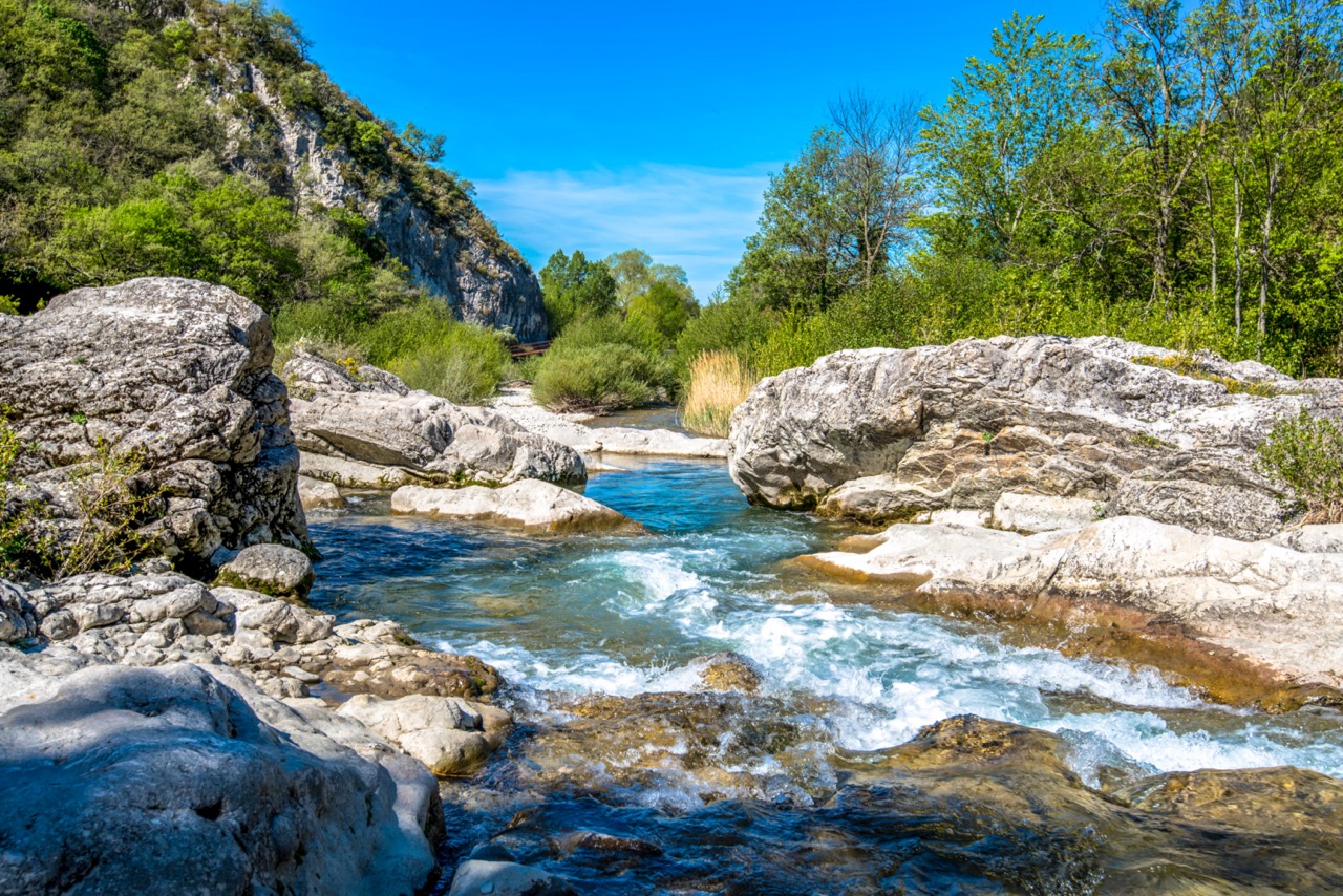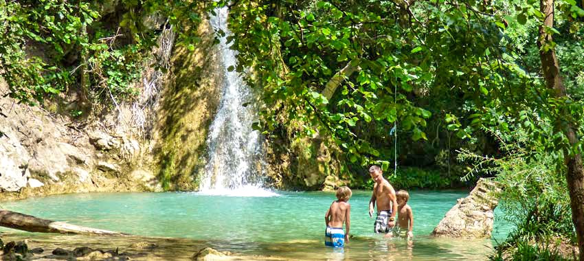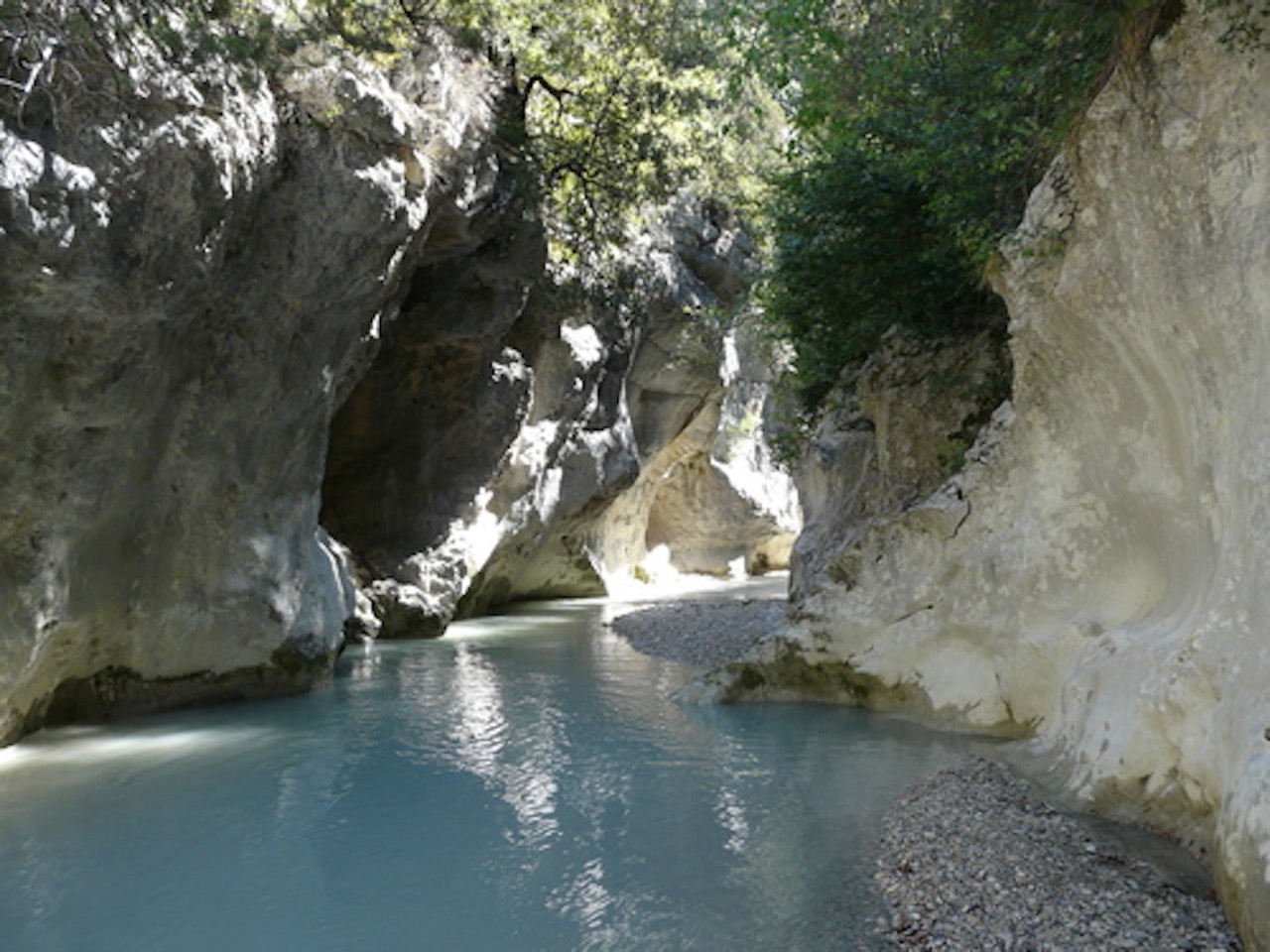 Een kleine rivier met op deze plek kalkplateau’s waardoor er (hele) kleine watervalletjes ontstaan waar je heerlijk in kan zitten of door heen kan lopen. Ook poeltjes van meer dan twee meter diep en ondiepe gedeeltes voor de kleintjes. Even verderop bij Soyans zijn ook zwemplekjes langs de rivier.