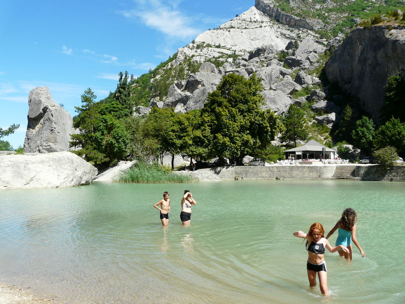 Een mooi zwem- en een vismeer naast elkaar bij Cornillon-sur-l’Oule tussen Rémuzat en La Motte-Chalancon. Gratis behalve in juli en augustus, dan is er ook een badmeester. Het ondiepe gedeelte is afgezet met boeien. Pas op! Verderop is het echt diep.