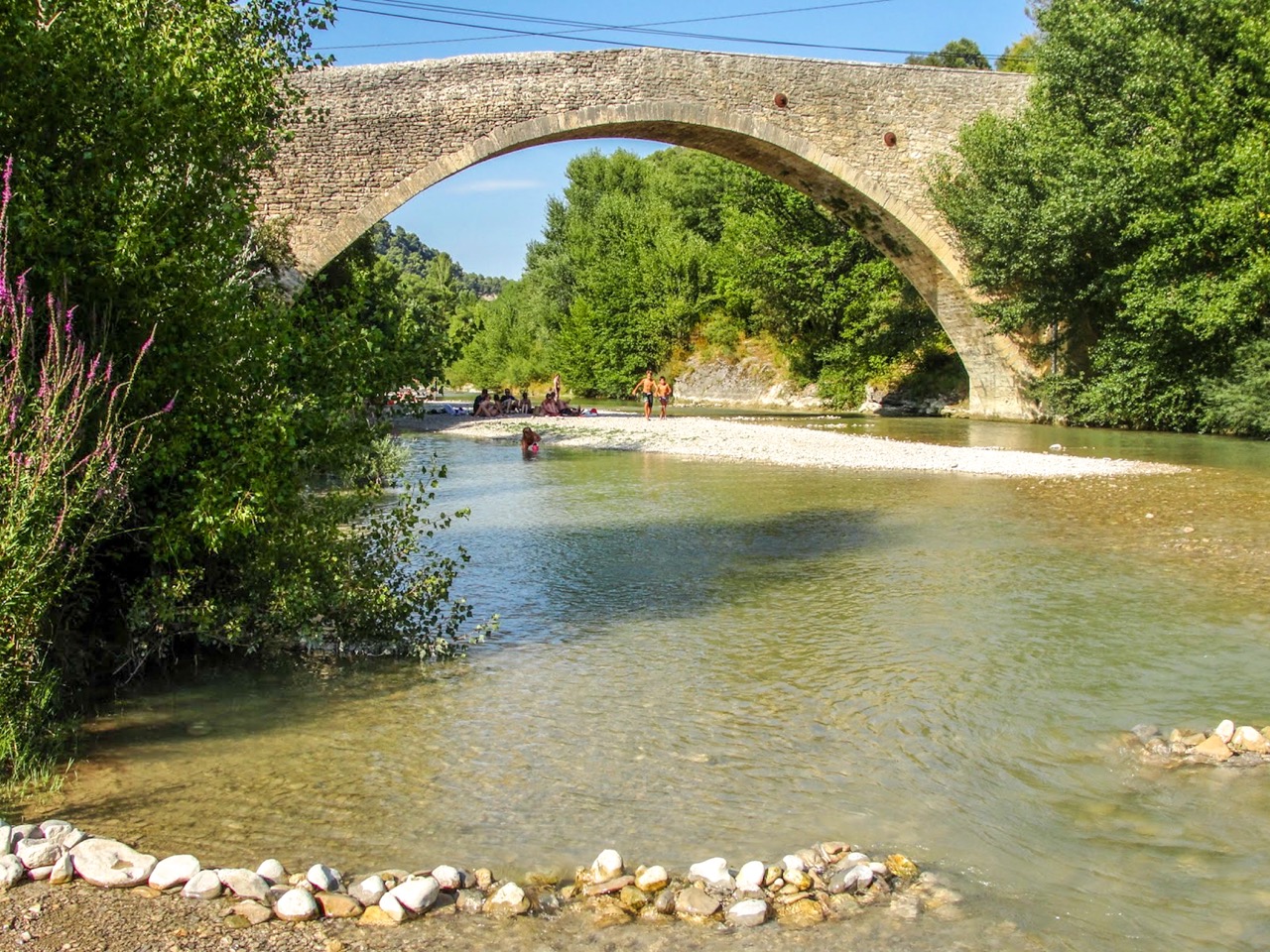 Op 8,2 km van Malaucène, tien minuten met de auto of een halfuurtje met de fiets. Een heerlijke plek aan het water van de Ouvèze, onder een oude Romaanse brug. Je vindt er schaduw- en zonneplekjes, stilstaand en snelstromend water. Een plek waar je gerust een hele dag kan doorbrengen. De kids hebben veel verschillende plekjes om te zwemmen, spelen, schuiven van de rotsen of zelfs om te springen van de rotskant.