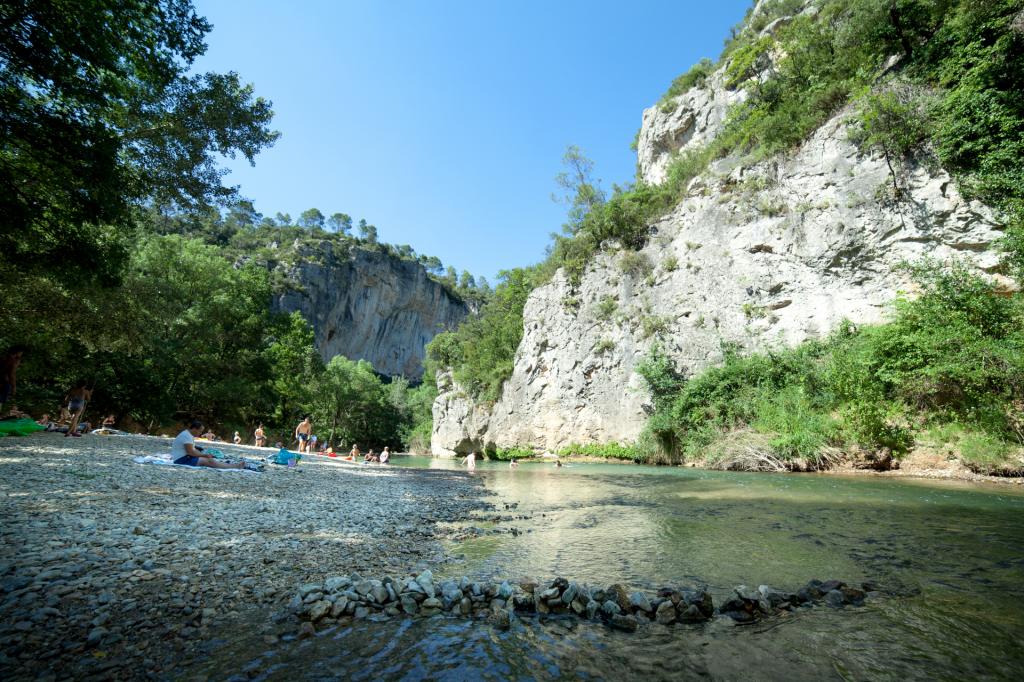Als je tijd en zin hebt, een van de allermooiste (en lekkere makkelijke) wandelingen van het hele departement is die door de Vallon Sourn richting Châteauvert. Iets van 2 uur, geen hoogteverschillen. Die vallei (sourn is Provençaals voor somber) is ongerept en beschermd natuurgebied en biedt ’s zomers de schaduw (vandaar: sourn) die je nodig hebt. En er zijn wat strandjes, opfrissen in de Argens!