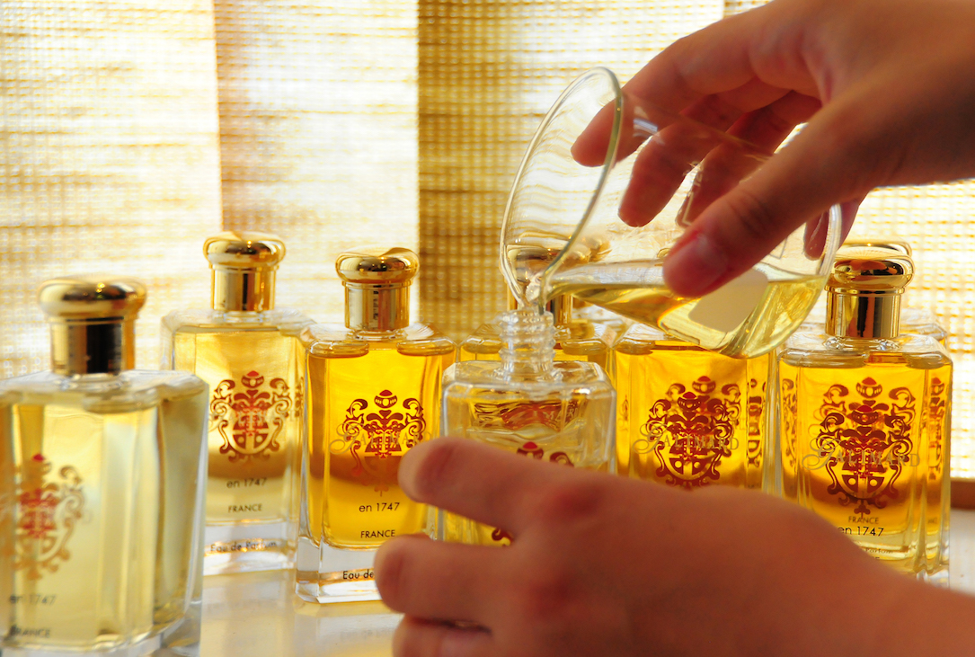 Eerst maar het legendarische verhaal van de stinkende handschoenen. Dat zit zo. In de middeleeuwen was Grasse zo ongeveer de al even zelfbenoemde hoofdstad van de leerindustrie, men was er gespecialiseerd in het looien van leer. Gouden handel, maar met één groot nadeel: dat leer stonk en niet zo’n beetje ook. De arbeidende klasse maakte er geen punt van, maar de handschoen dragende aristocratie natuurlijk wel. En toen was daar de lokale leerbewerker Galimard die op het lumineuze idee kwam die leren gants met een lekker geurtje in te smeren, of eigenlijk in een bad met Provençaalse bloemen te laten weken. Wat je nu noemt een big hit en in 1614 erkende Louis XIII het maken van geparfumeerde handschoenen als een serieus ambacht.