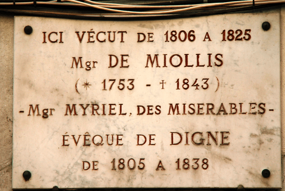 In de eerste hoofdstukken speelt een Monseigneur Bienvenue Myriel de hoofdrol, hij is bisschop van Digne-les-Bains, in de volksmond Digne (openingsfoto), in wat nu het departement Alpes-de-Haute-Provence heet. Toen hij zich er kwam vestigen, begon hij ermee het ruime bisschoppelijke paleis open te stellen voor ziekenzorg. Hij, zijn zuster en de huishoudster stelden zich tevreden met een paar bescheiden vertrekken die ze sober inrichtten. Monseigneur Myriel was begaan met het lot van de armen. Waar hij maar kon bood hij concrete hulp. Hij maakte zich daardoor bij de zielen waarover hij waakte bijzonder geliefd.