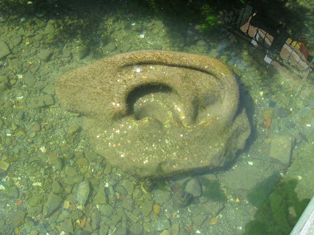 In de Sorgue ligt ter hoogte van het steegje Gaston Imbert een enorm uit steen gehouwen oor. Cadeautje van de beeldhouwer W. Mangold. Het stelt het oor van René Char voor, dat naar het ruisen van de rivier luistert en zo inspiratie opdoet voor diens gedichten. Maar in de volkse legendevorming werd het al snel het Oor van Van Gogh dat hij in de rivier gooide nadat hij het had afgesneden. Veel mensen komen er even naar kijken. En de bijgelovigen onder hen gooien er muntjes naar, die geluk moeten brengen. Dat doen ze een klein beetje, aan de lokale jeugd die ze graag opduikt, als extra zakcentje. En aan de toeristen, die er vanaf het terras van een nabije bistro graag naar kijken. Ik pas, het is nog een flink eind rijden naar huis. Maar ik kom terug, want ik heb net zo goed naar de stad en de rivier geluisterd als René Char. En geloof me, dat is een betoverende fluistering.
