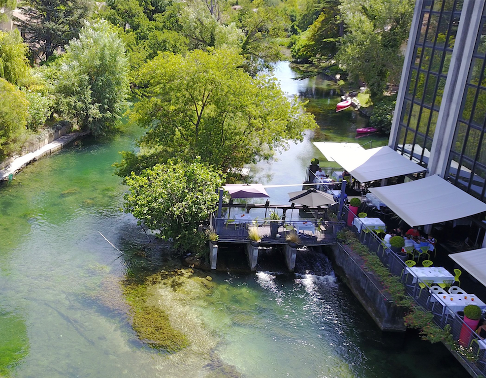 L’Isle-sur-la-Sorge (21.000 inwoners) leefde vroeger en nu nog van zijn unieke ligging, tussen de Rhône en het plateau van de Vaucluse. In de twaalfde eeuw verrezen er de eerste paalwoningen in de moerassen en ook toen al werd een graanmolen door zo’n schoepenrad aangedreven en omstreeks die periode ontdekten vissers de voedingswaarde (en commerciële mogelijkheden) van riviervangst. Ook anno nu zeggen maar weinig mensen nee tegen rivierkreeftjes en forel.