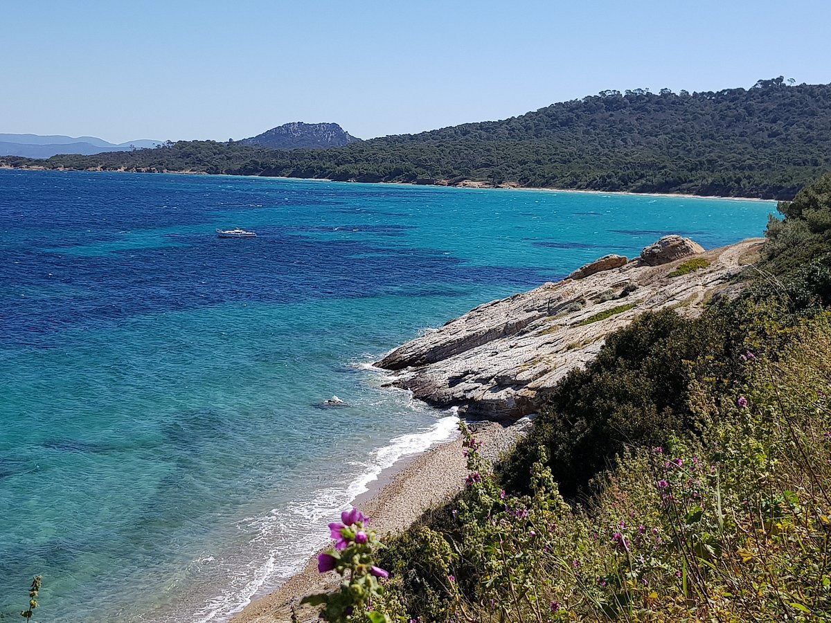 Een paar weken later ben ik er teruggegaan. Nota ben ik die niet zo’n wandelaar is, had afgesproken mee te lopen met vrienden die het sentier littoral de Giens gingen doen. Ik liet me overhalen omdat er verteld werd dat we op dat pad langs de kust allerlei echt unieke strandjes zouden tegenkomen en die wilde ik weleens zien. En er was me ook gezegd dat het geen zware wandeling was, kleine 7 km, amper hoogteverschil, goed te doen in 3 à 3,5 uur. Wel serieus schoeisel aan en water meenemen, je komt onderweg geen ravitaillering tegen, het kan knap warm zijn en het kan er ook nog flink waaien.