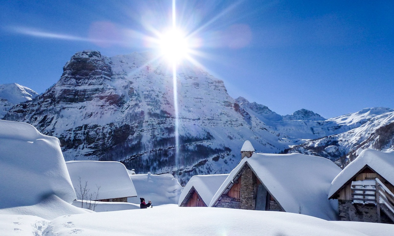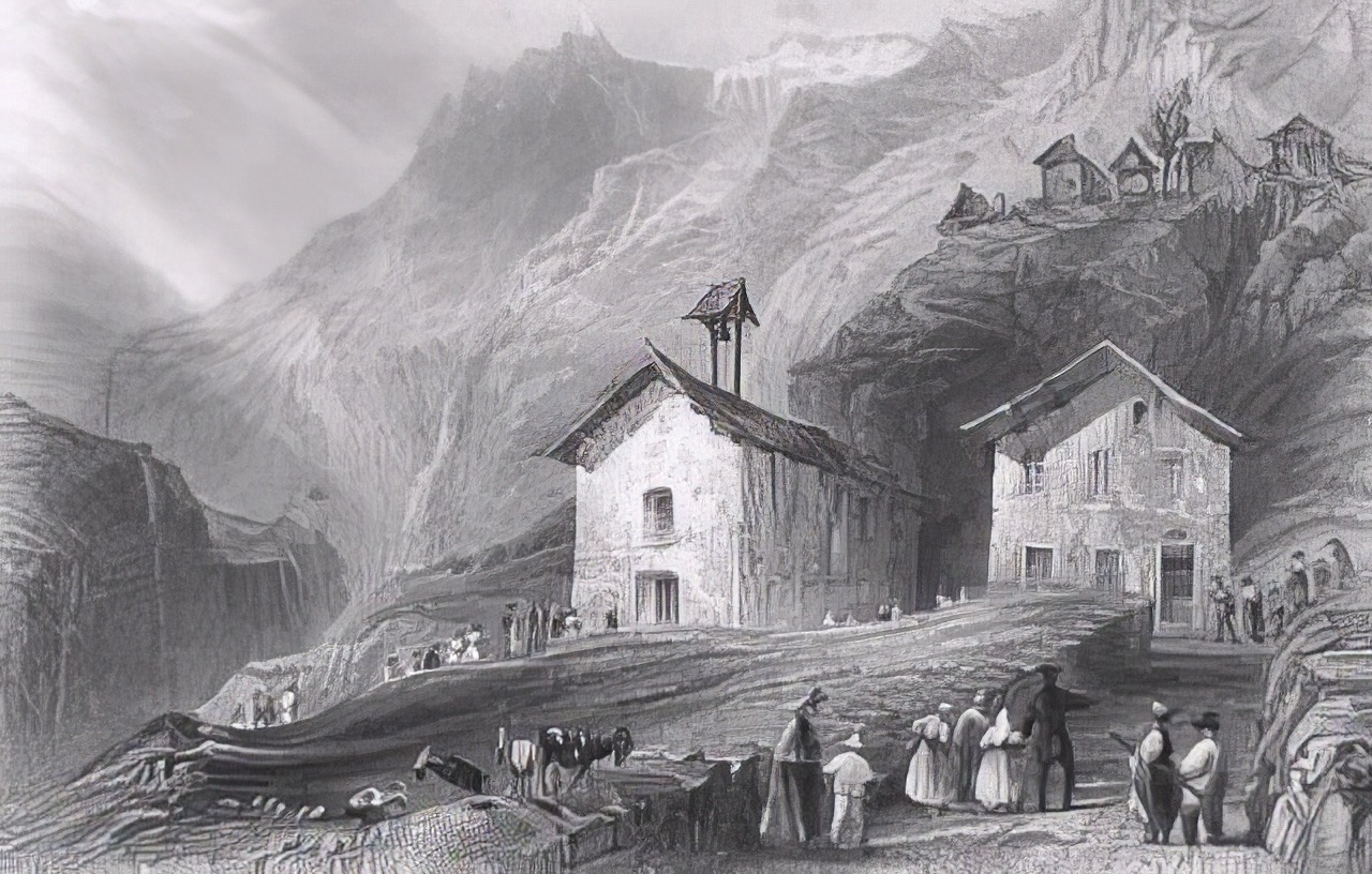 Links, voorbij een doorzonbos met mélèzes, spettert een beek. Rechts aan de overkant van het ravijn stort een waterval zich witschuimend in een kom in de diepte. De auto’s op de parking worden steeds kleiner. Boven, voorbij een paar verweerde dennen, komen de eerste huizen in zicht. Even verder nog en daar heb je het kerkje. Met daarnaast en daarboven weer een paar huizen. Stenen onderbouw, de rest van hout. Sommige zijn vervallen. Wie woont daar nou?
