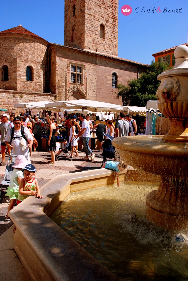 Gelegen op de zandsteenrotsen die de vlakte domineren en waar doorheen de rivier l’Argens stroomt, vormde ‘Forum Julii’(zoals Fréjus heette) bijna ontelbare eeuwen terug een voorname Romeinse handelspost aan de route Aurélienne. Maar het was in de eerste plaats een marinehaven, al was die aanduiding toen vast nog niet uitgevonden. Maar de Romeinen waren er dus en dat impliceerde óók cultuur. Kan je lang over nadenken, of het mede aan die lui te danken is dat Fréjus vandaag de dag ook een kunstenaarstad is. In het voetgangersgebied is een hele route uitgezet langs ateliers, van schilders tot en met beeldhouwers en kleermakers.